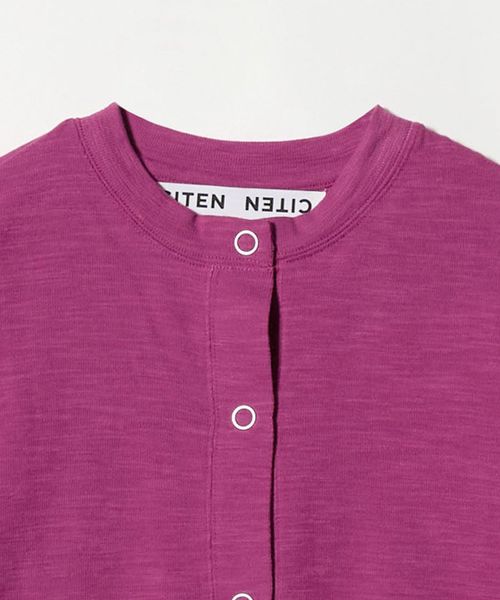立体感のあるスラブ素材と、リングドットボタンがポイントのカーディガン。