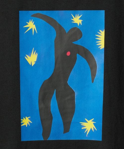 フロントに「イカロス」の絵を大胆にプリントし、襟の後ろににアンリマティスのロゴをプリントしたTシャツ。