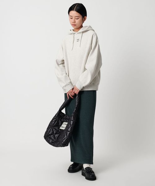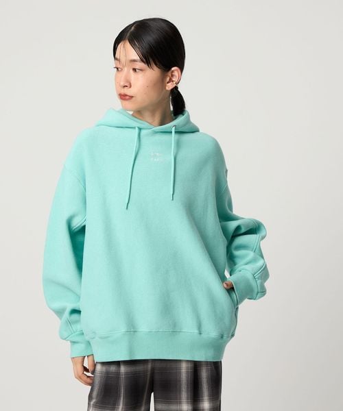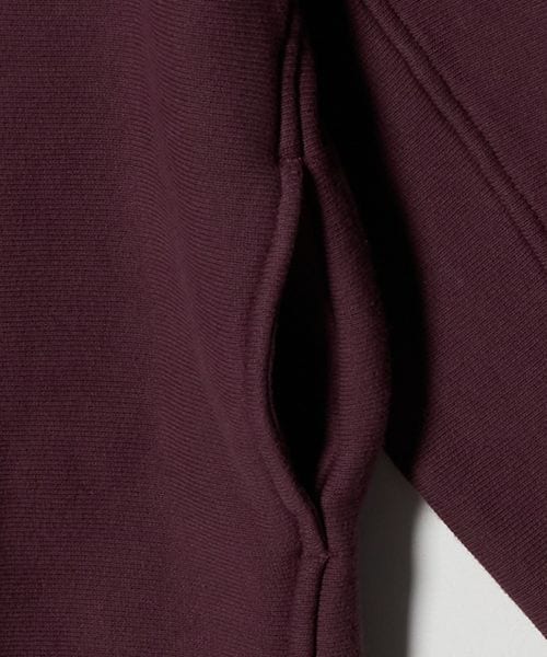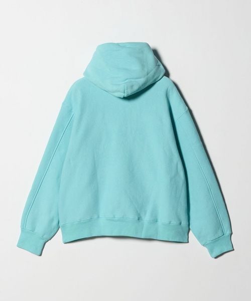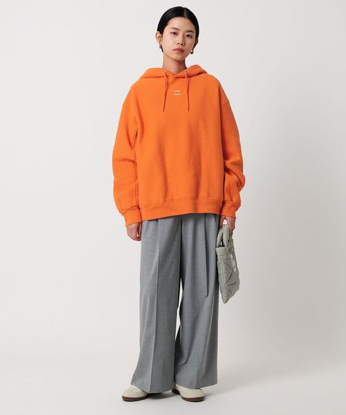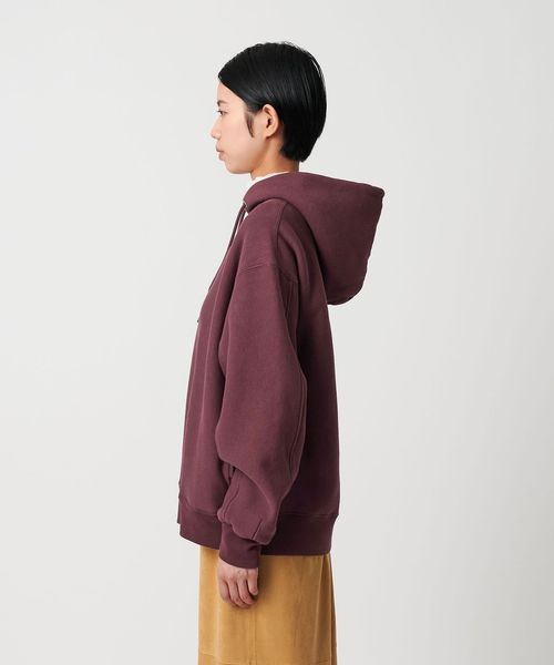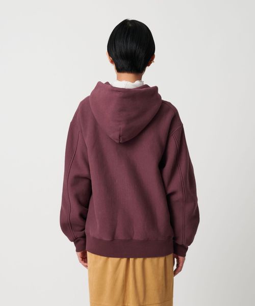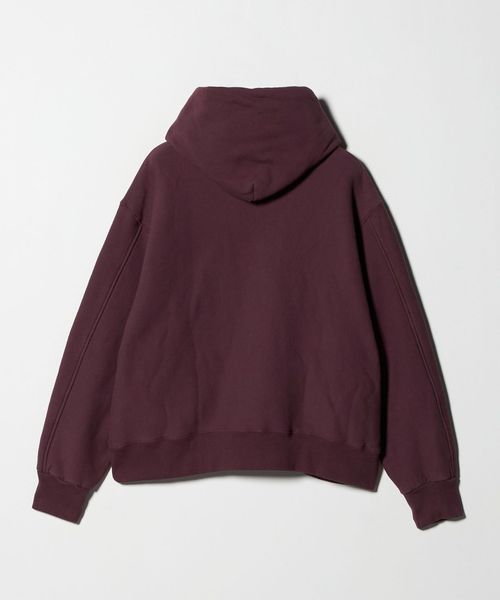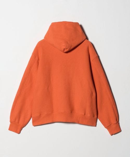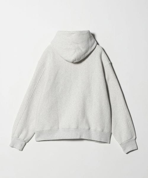 ユルめのシルエットながら肩幅をやや小さく設定することですっきり着られるバランスとなっており、腕周りや肩幅、ボディのサイズ感にこだわったフーディは、生地のハリ感によるフードの立体感がポイントです。
