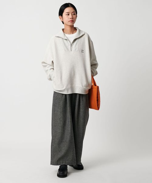 衿のハーフジップは少しだけ開けてハイネックのように着こなしたり、深めに開けてインナーとのレイヤードを楽しんだりとお好みのバランスで着まわして頂けます。