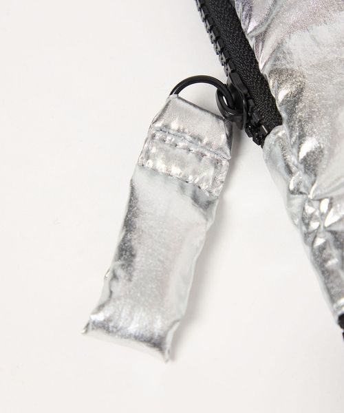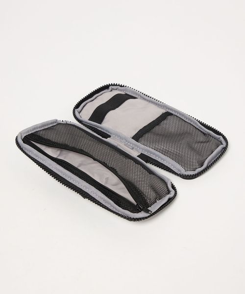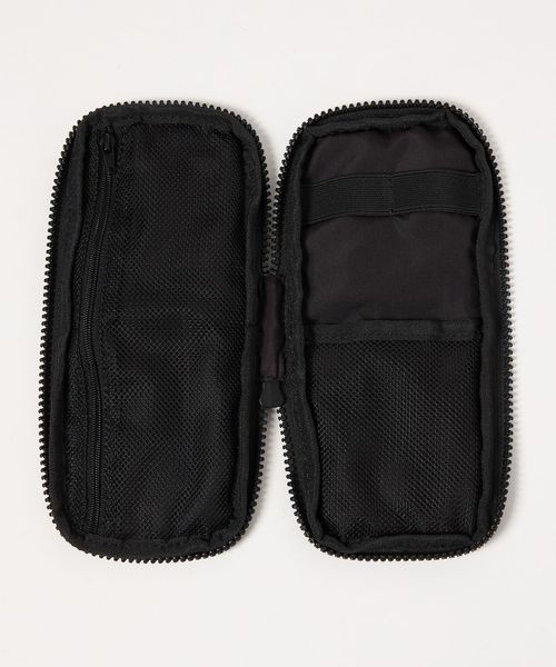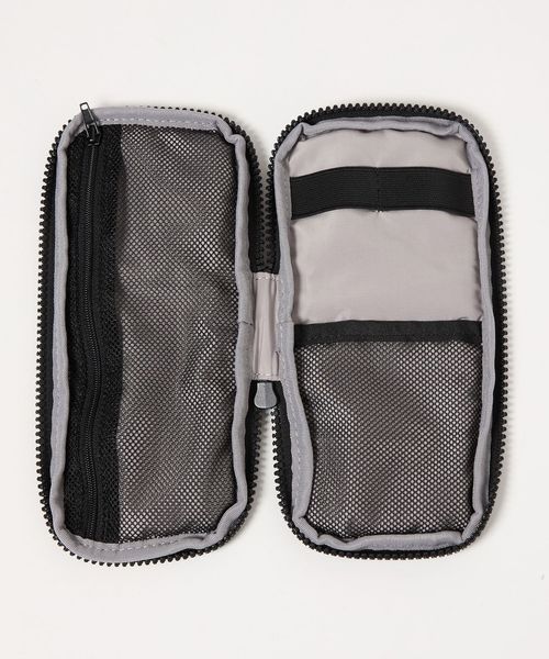 パファー持ち手でぐるりとワイドな開口で使いやすく、片面はジップ付きメッシュポーチ仕様で細かいアイテムの収納にぴったりです。