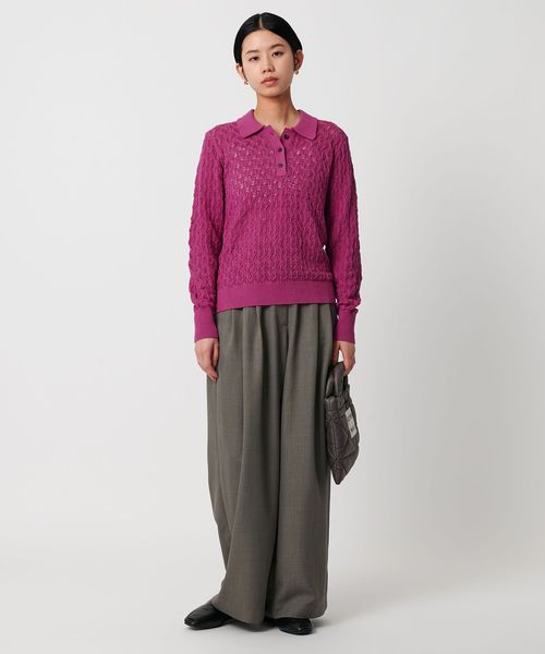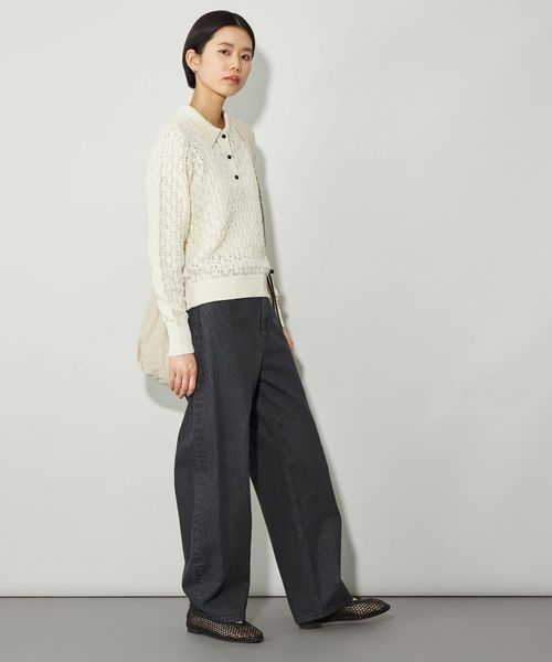 ややタイトなシルエットなのでボリューム感のあるボトムと相性が◎です。