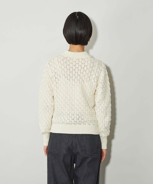 立体的な編み柄は、太い番手の糸で編む事によって、カジュアルさを出しています。