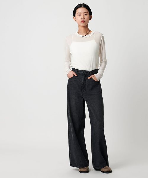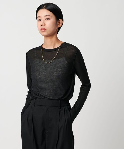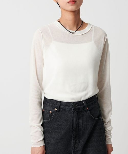 シンプルながらもトレンド感のあるほんのり透ける質感が、ベーシックなスタイルに抜け感をプラス。