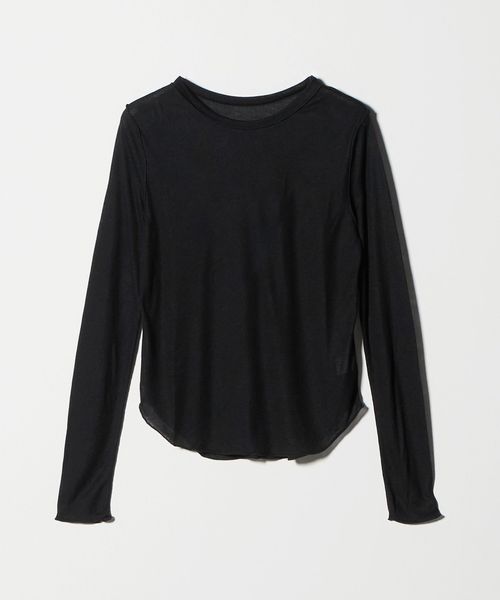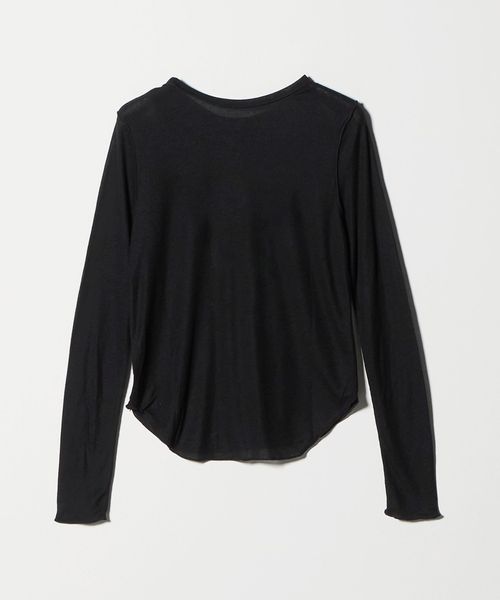 細番手の糸を緩めに編んでシアー感を出した、肌触りが気持ちの良いフライス生地を使用しています。