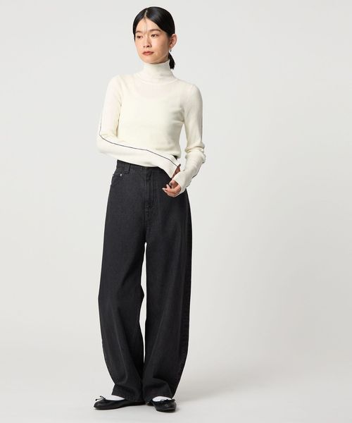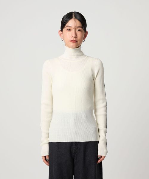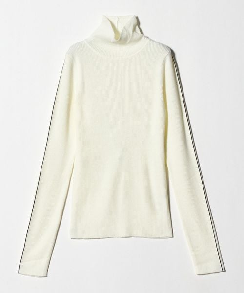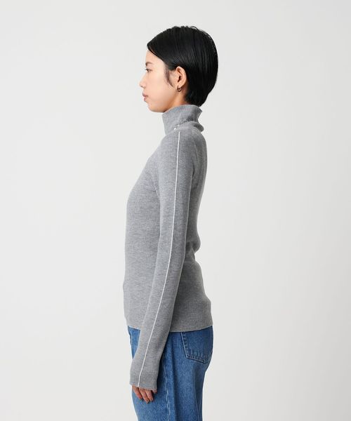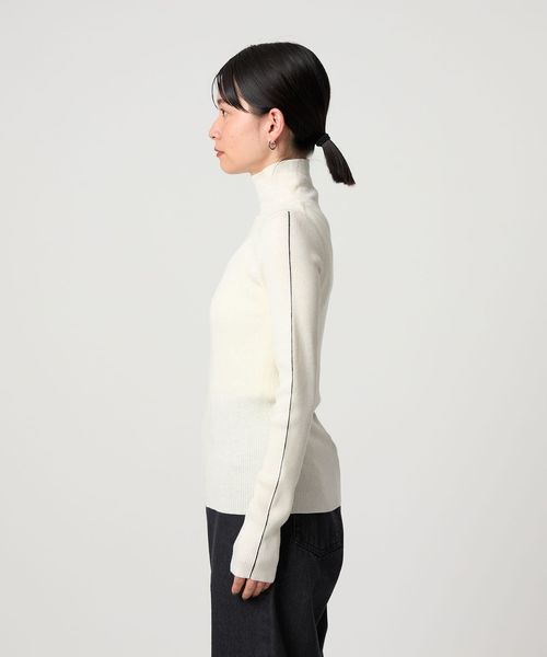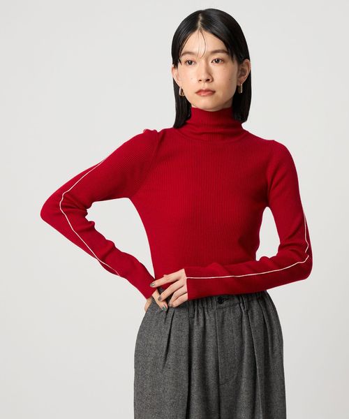 さりげないライン使いがアクセントのタートルネックニット