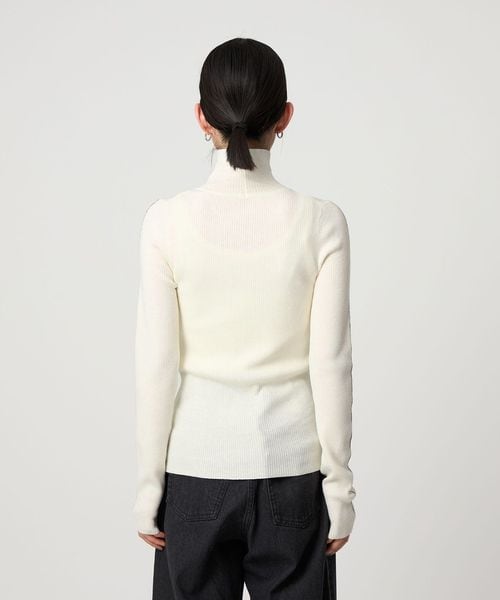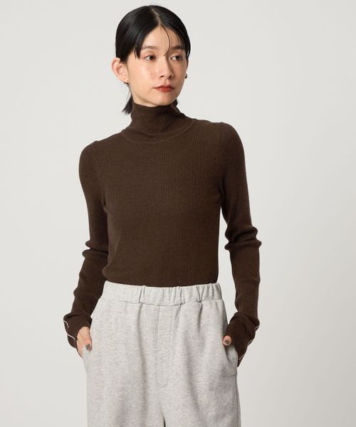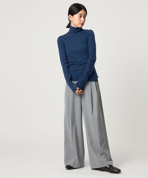 着回ししやすいデザインで、インナーとしてもおすすめの一着は、ハイゲージのリブ編み仕様による、コンパクトな表情が魅力。