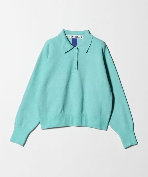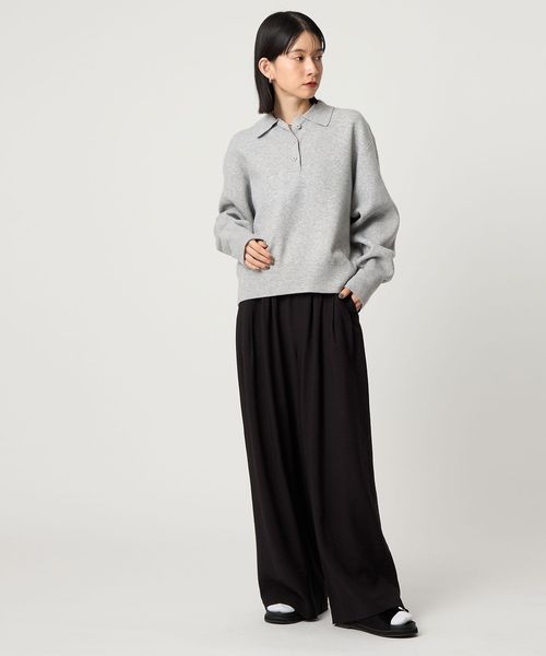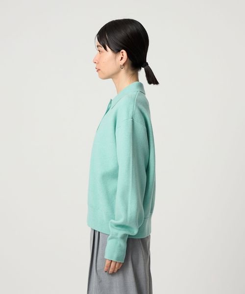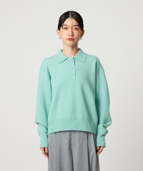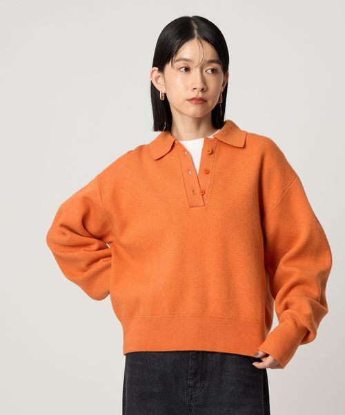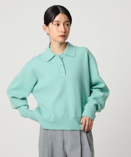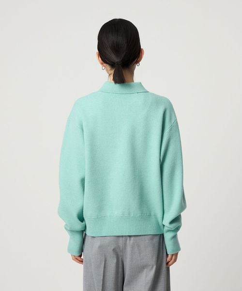 スウェット感覚でラフに着られる、トレンドのポロ衿デザインのニットトップス。