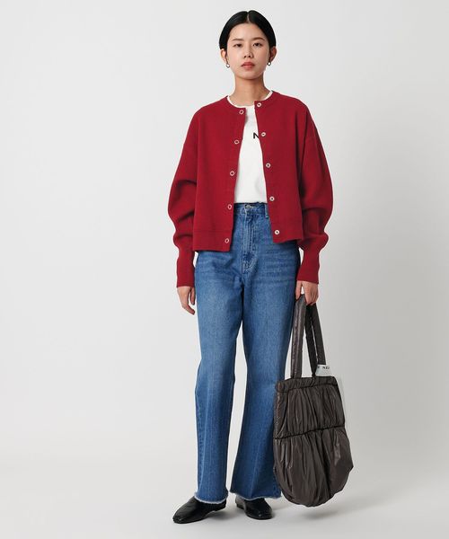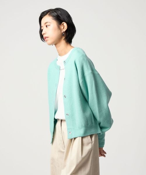 デイリー使いにちょうど良い素材感で、上品見えするニットをスウェットのように落とし込んだデザインがポイントのカーディガンです。