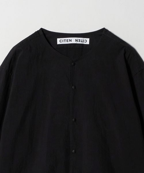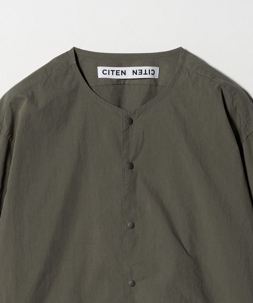 CITENの定番、オーバーシャツをベースにノーカラーデザインのシャツジャケットを作りました。