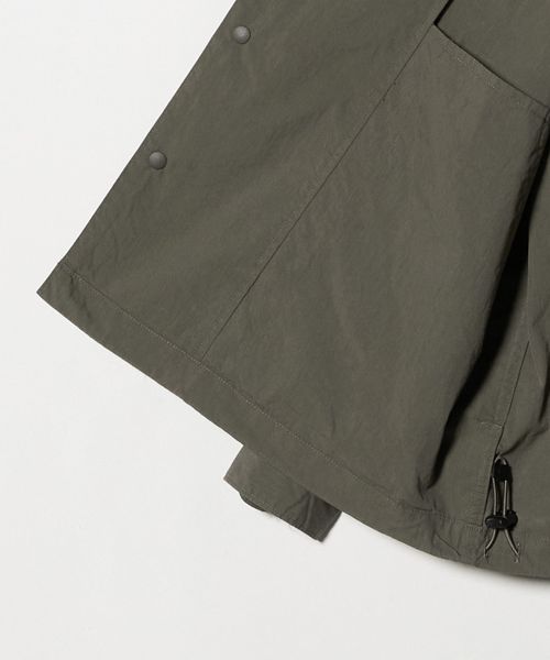 フロントに配置した軽く着脱容易なドットボタンや脇部分にあるサイドポケットは様々なシーンで活躍します。