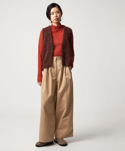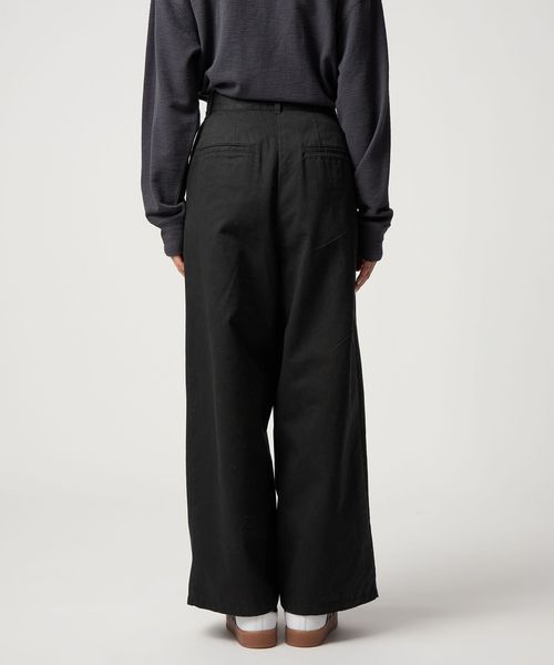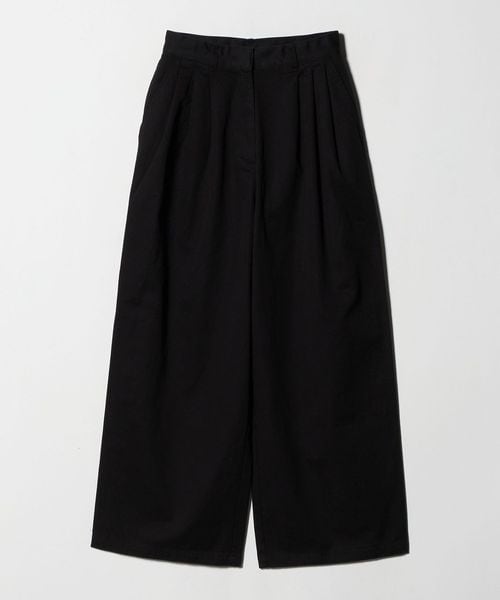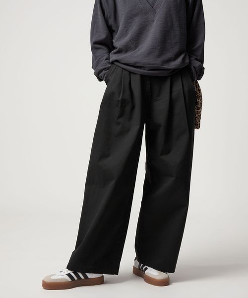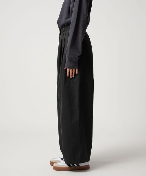 フロントタックのボリュームのあるシルエットがトレンド感のあるワイドパンツ。