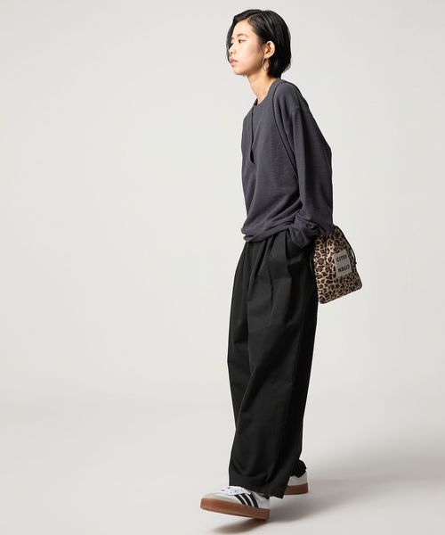 ワイドなシルエットに合わせ、スニーカーやソックスの合わせで足元のアレンジもお楽しみください。