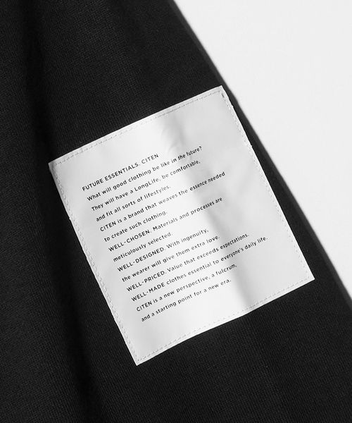 洗練されたシルエットの中に、ステッチレスでクリーンさを表現し、袖にはCITEN ESSENTIALのテーマをプリントしたタグを付けたディテールの一着です。