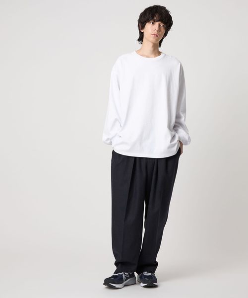 サイズ展開もあるので、スッキリとした着こなしから、ルーズな着こなしまで幅広いコーデが可能な一本です。
