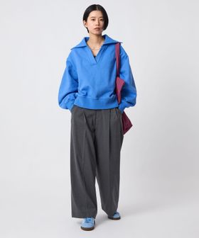 すっきりとした丈の長さによって全体のバランスが整ったスウェットです。