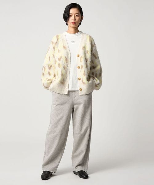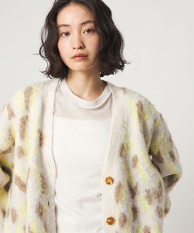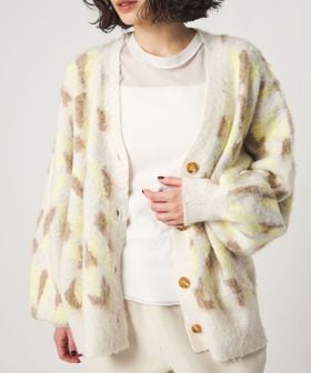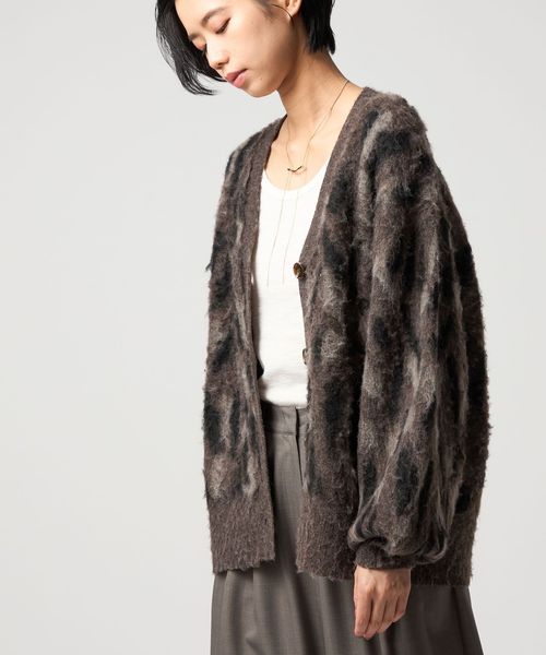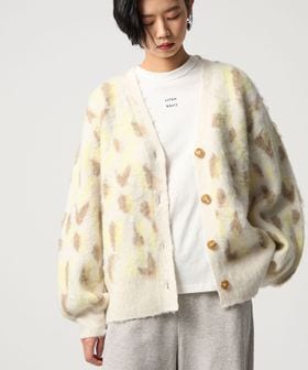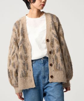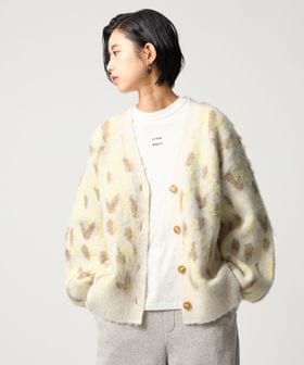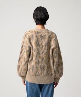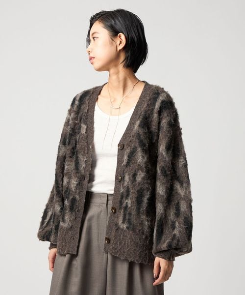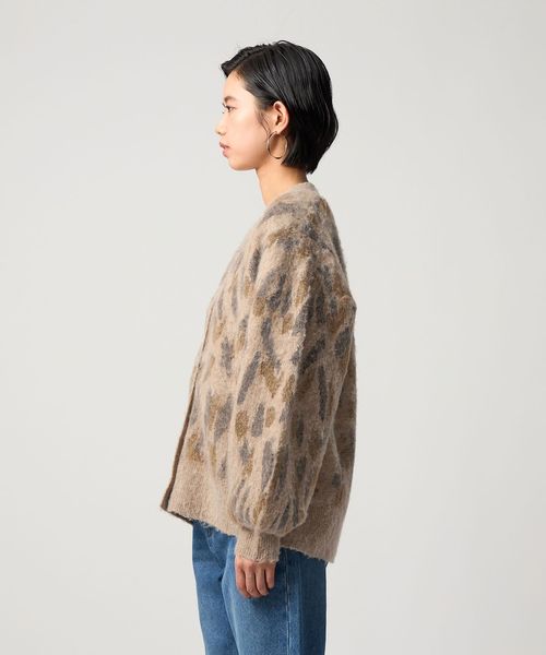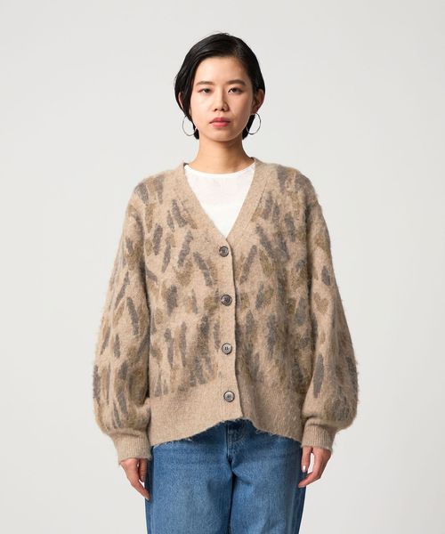 オリジナルのレオパード柄で起毛感のあるふわふわとした素材が魅力のニットカーディガン。