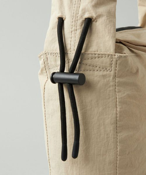 ショルダー部分は太目で肩あたりがよく、2本のドロストでシャーリングを寄せて長さ調整をもできる2WAY仕様で提案しています。