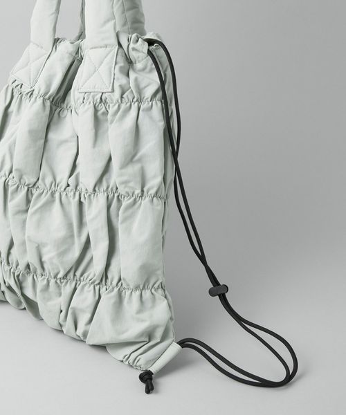 4段シャーリングが目を惹く2WAY仕様のトートバッグ。