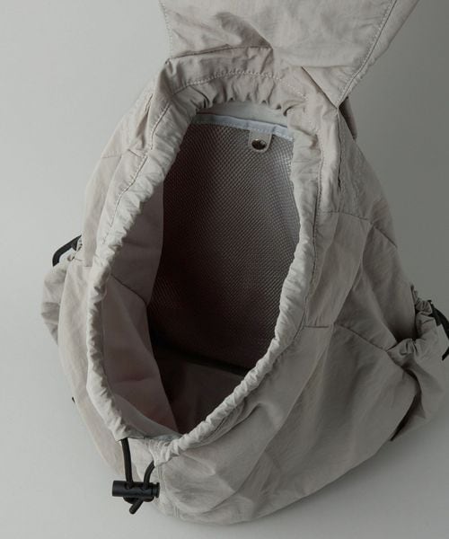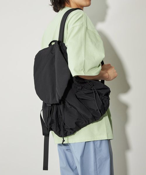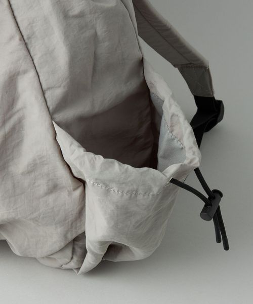 A4サイズの書類がしっかり入るサイズ感、サイドポケットもドロスト仕様で小物やペットボトルなどすぐに取り出したいアイテムの収納にピッタリです。
