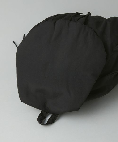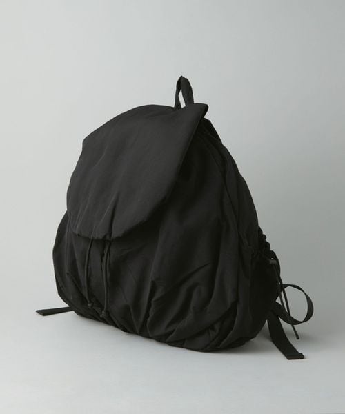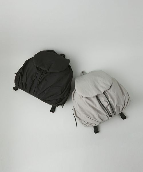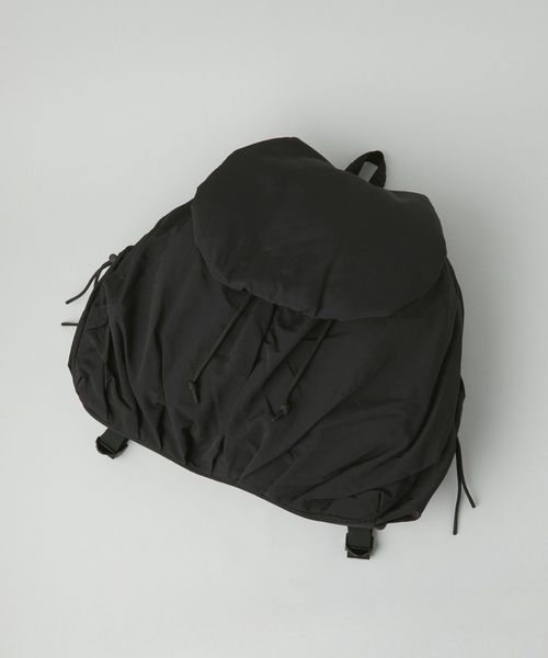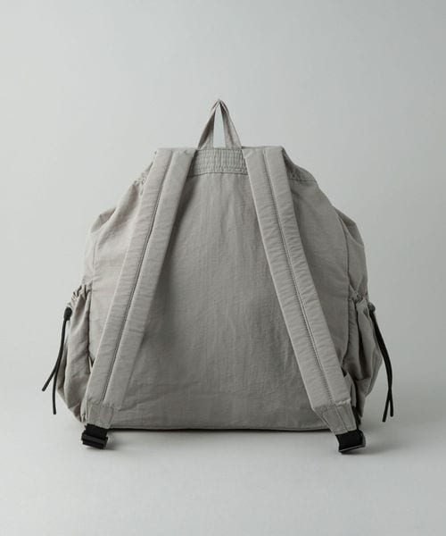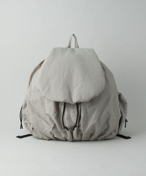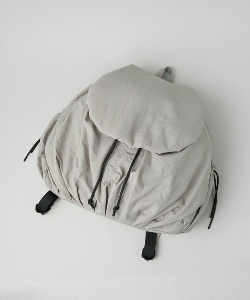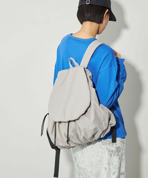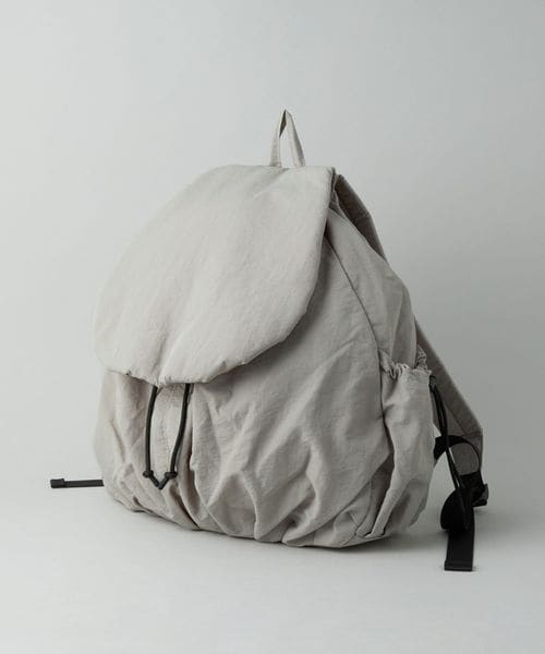 ややつや感のある素材でカジュアルすぎない見え方のバックバック。