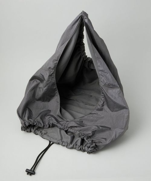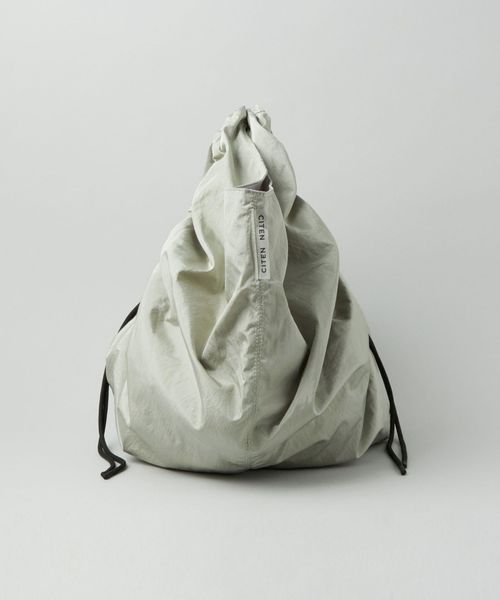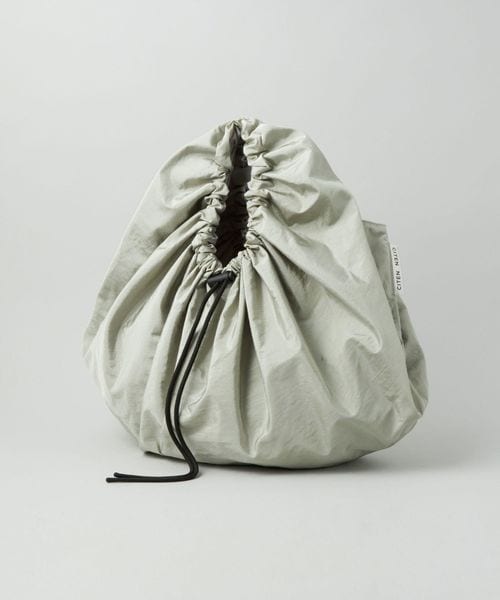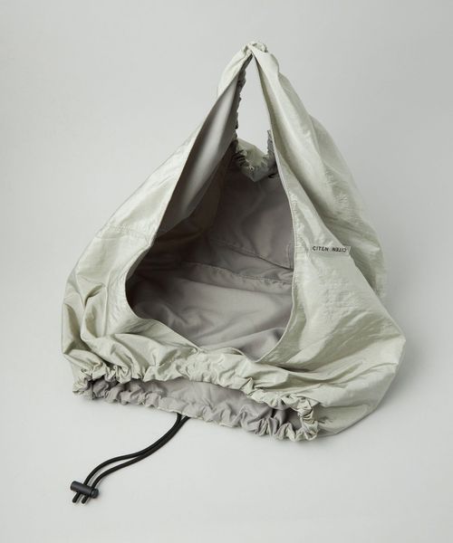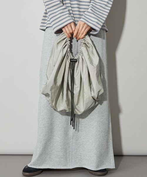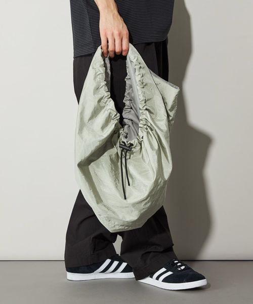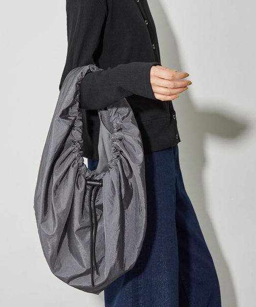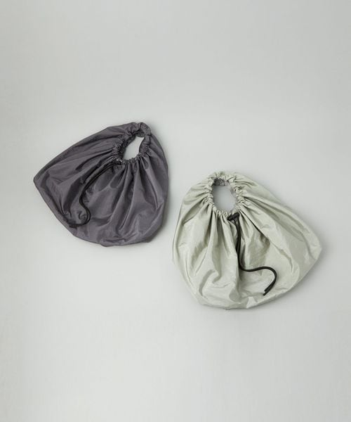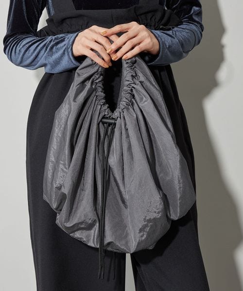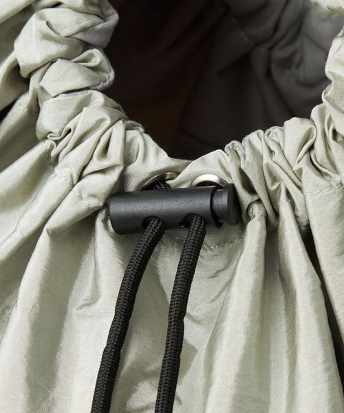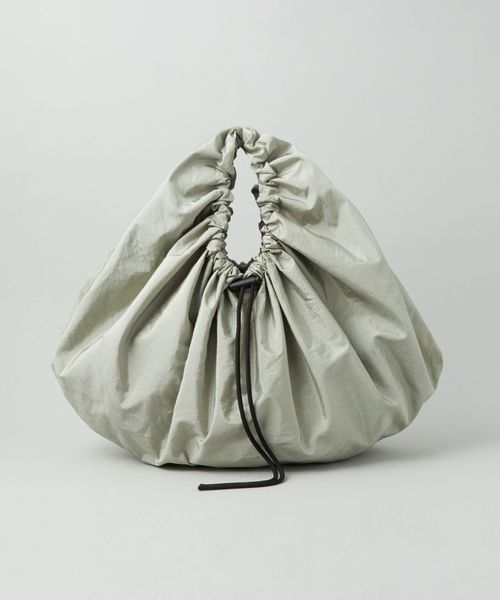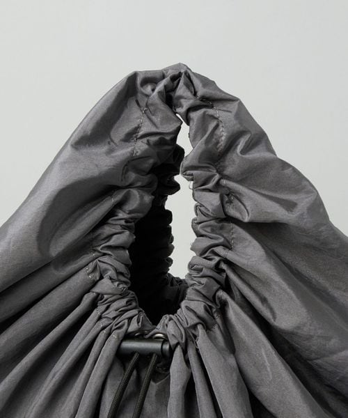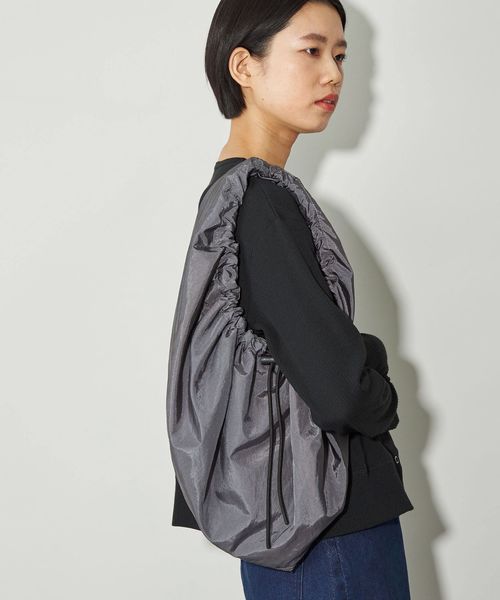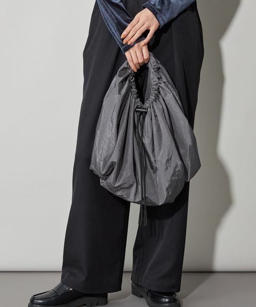 左右のハンドル部分のドロストでハンドルの空きを調整できるギャザーバッグ。