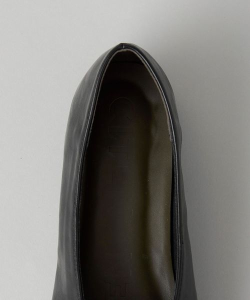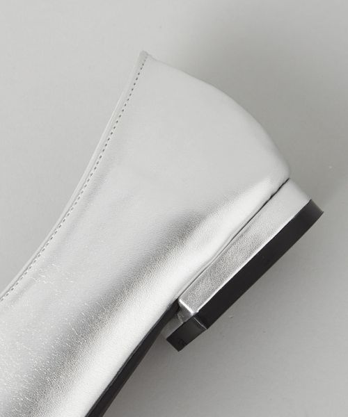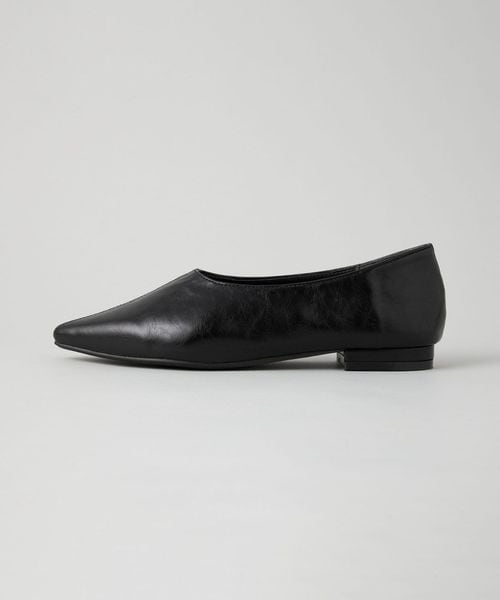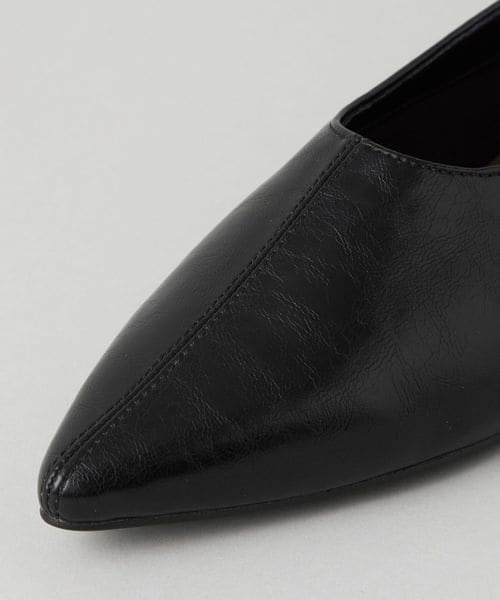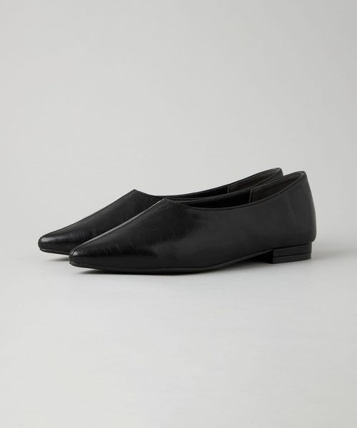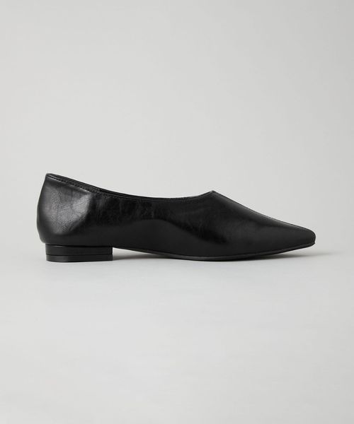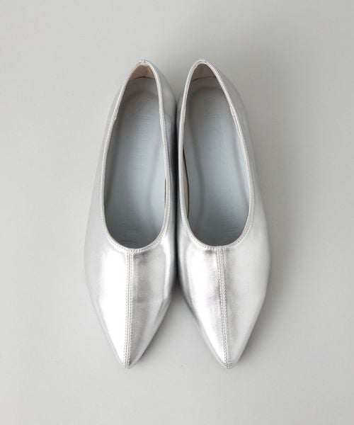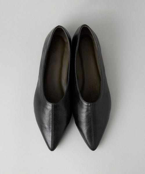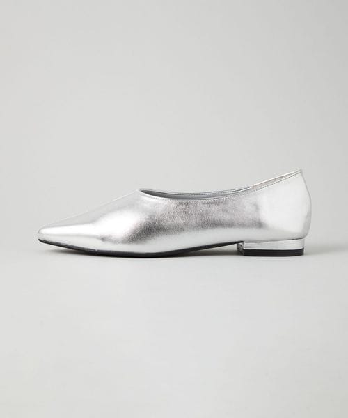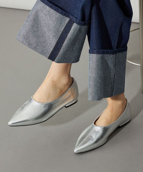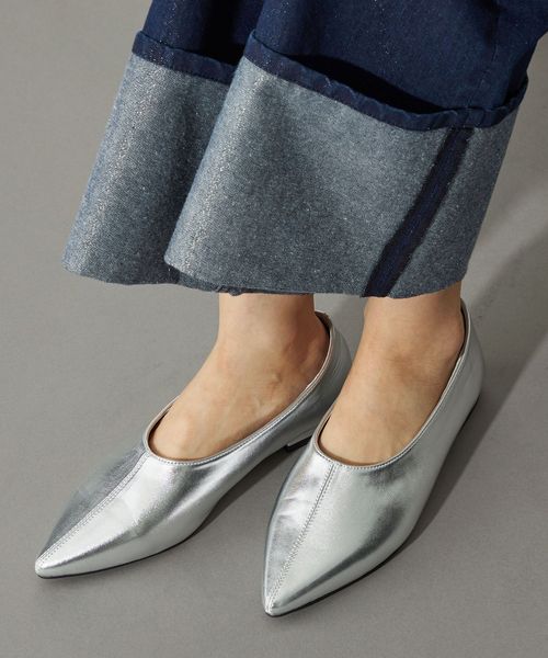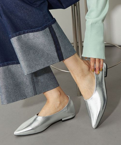センターステッチがアクセントのシンプルポインテッドフラットシューズ。