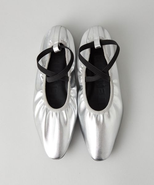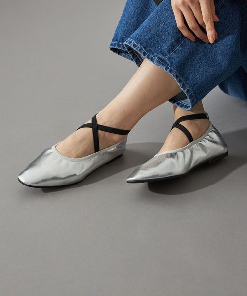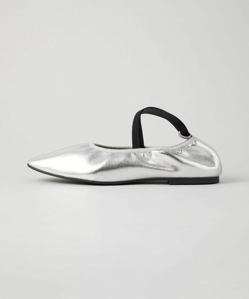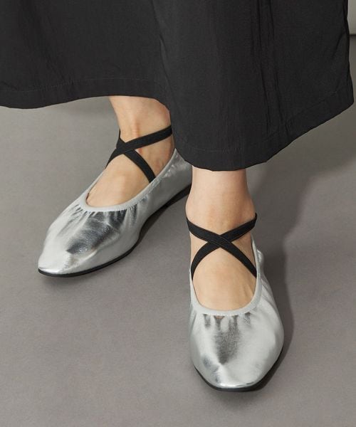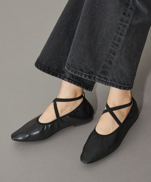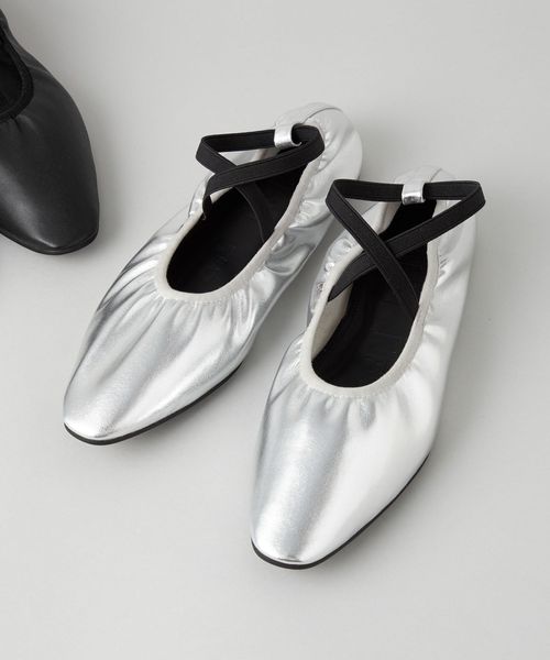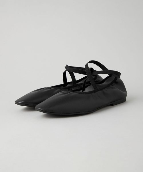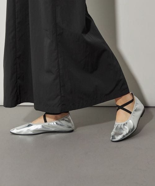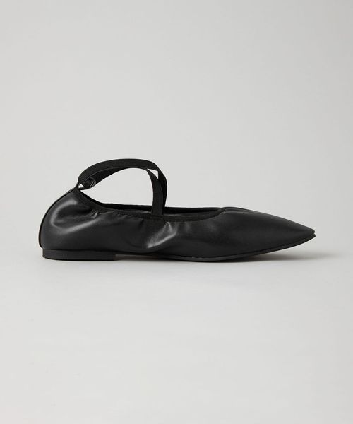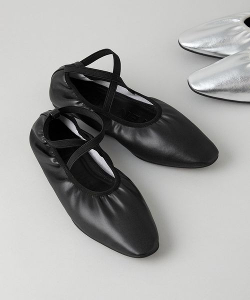 足馴染みが良い柔らかい合皮を使用したバレエ型フラットシューズ。
