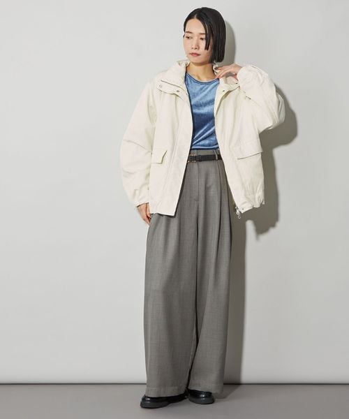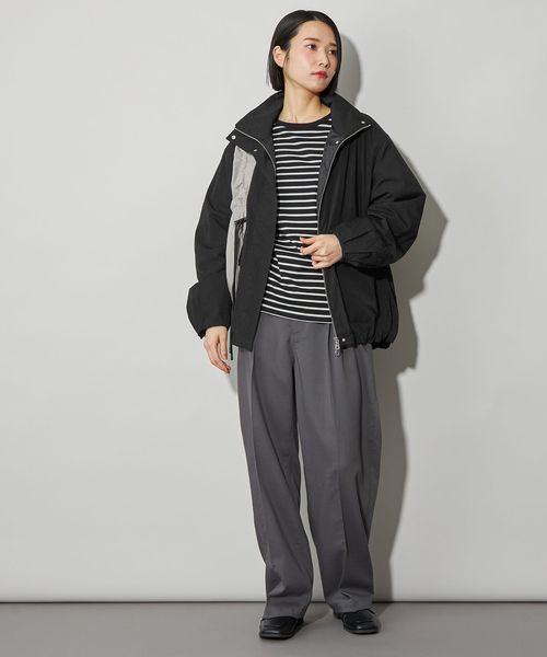 ゆるめのスタンドネックで合わせやすいミドル丈になっており、飽きの来ないデザイン。