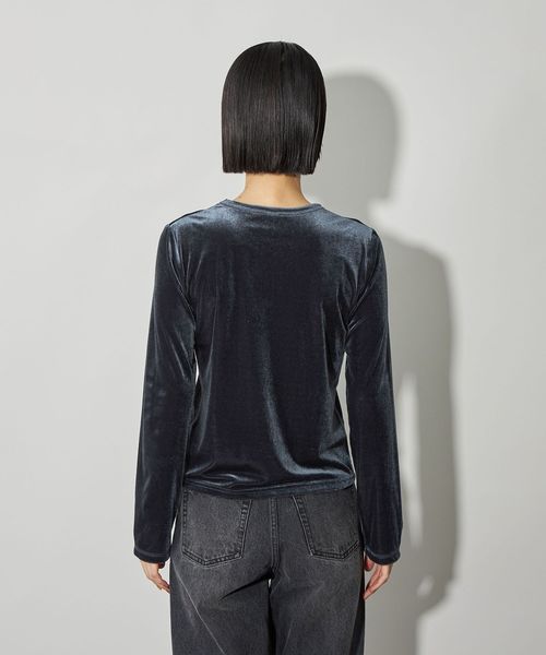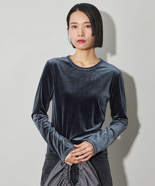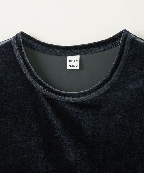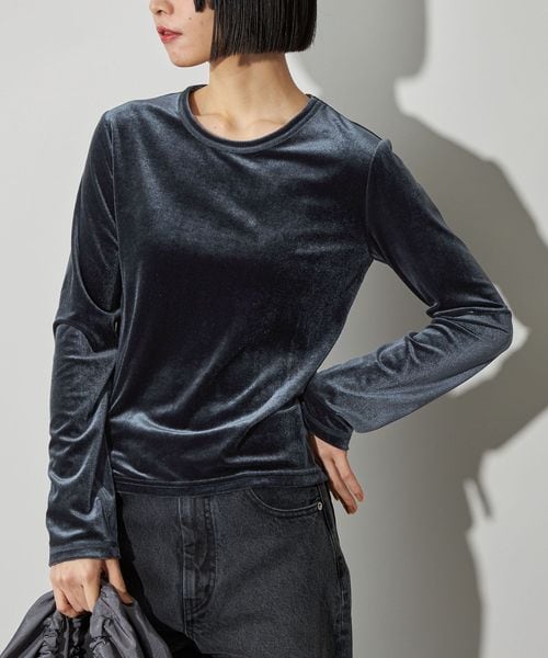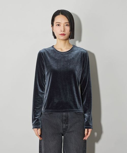 ベロアカットソーを使用したコンパクトトップス。