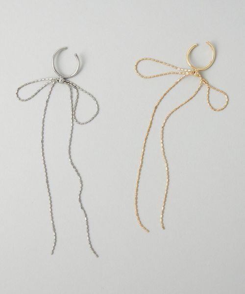 シリンダーチェーンをゆるくリボン型に形とった片耳イヤーカフ。