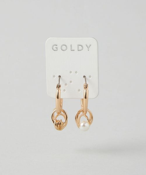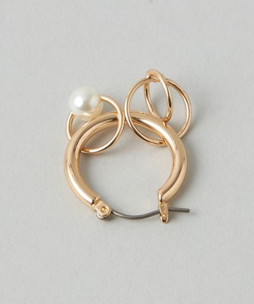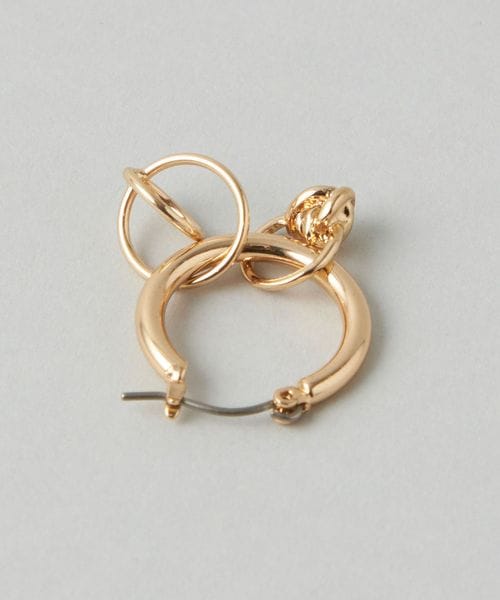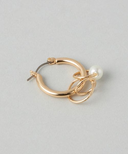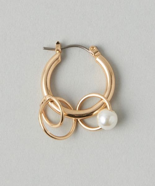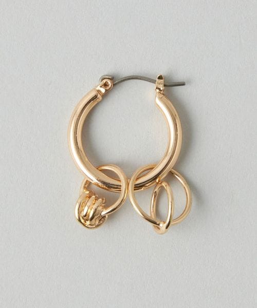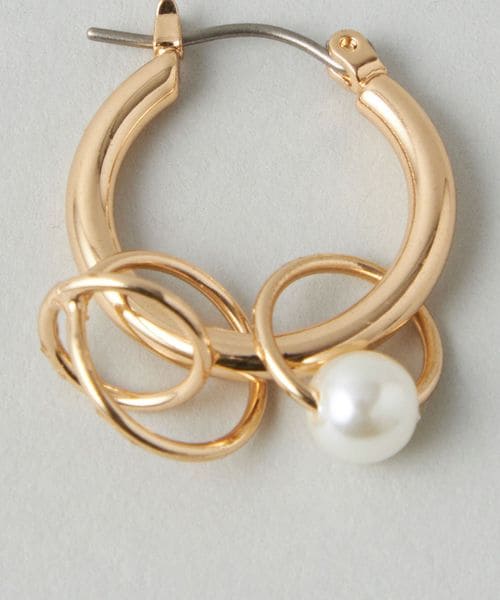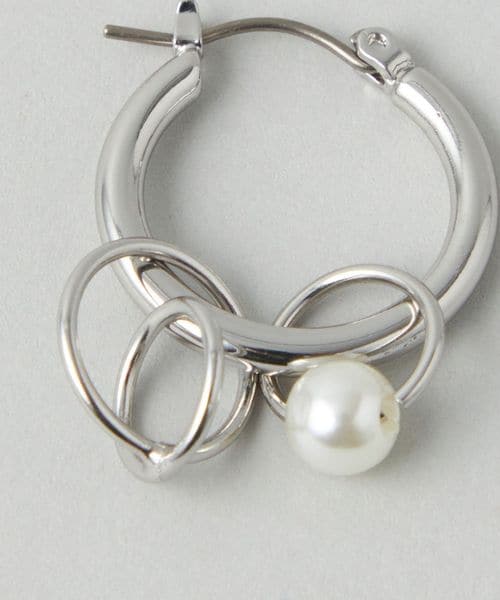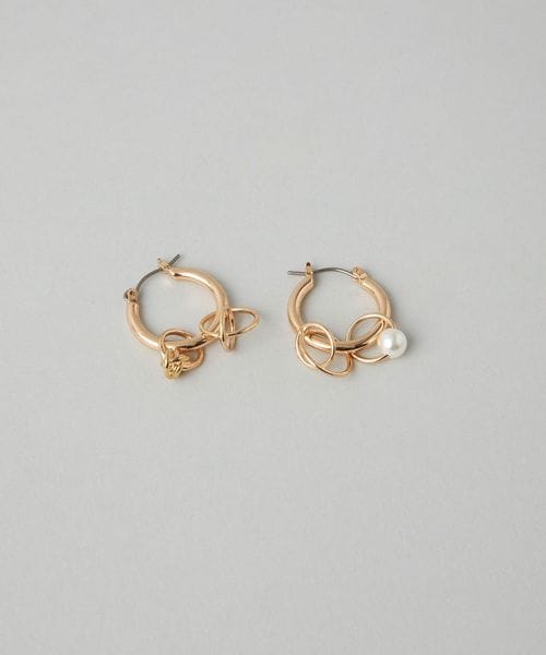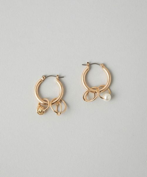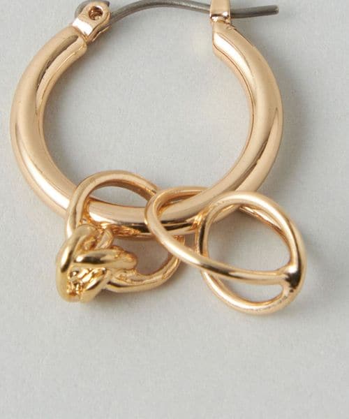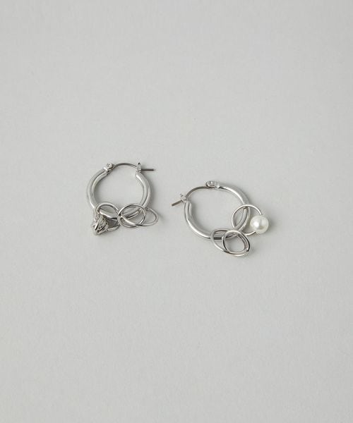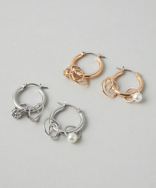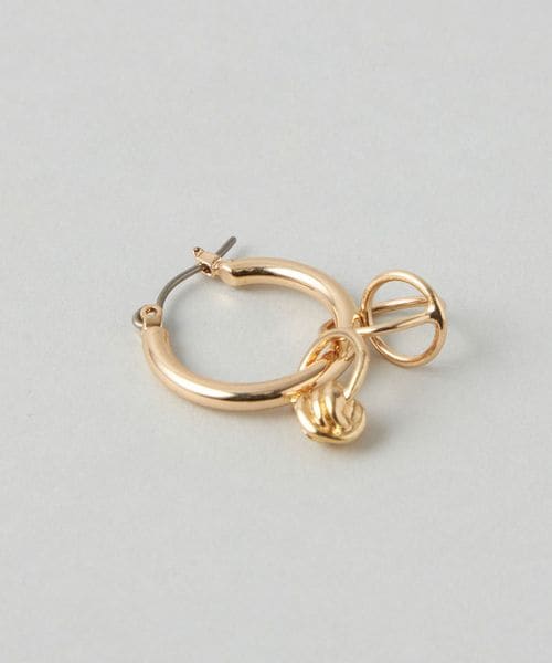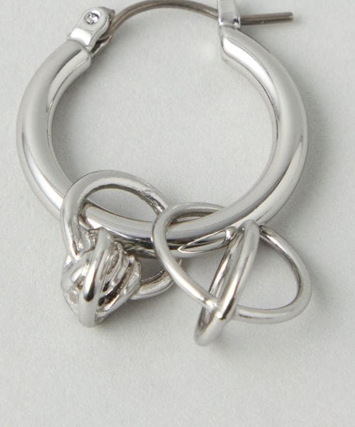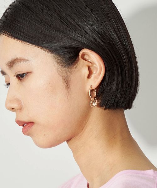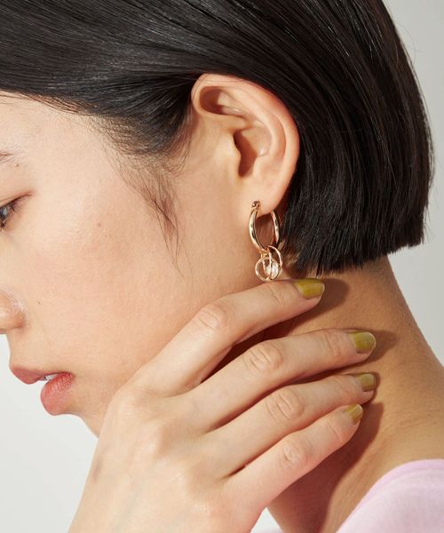 シンプルなフープピアスにキューブ型にかたどったモチーフパーツを通して組みまわせるタイプのピアス。
