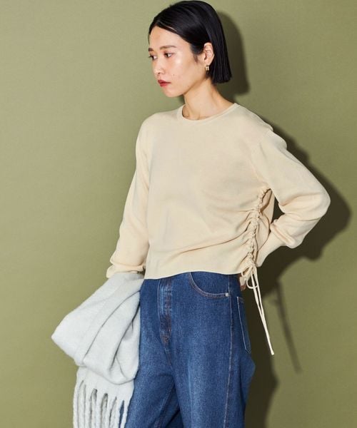 トレンドのドロストデザインが入ったシンプルなニットプルオーバーが登場です。