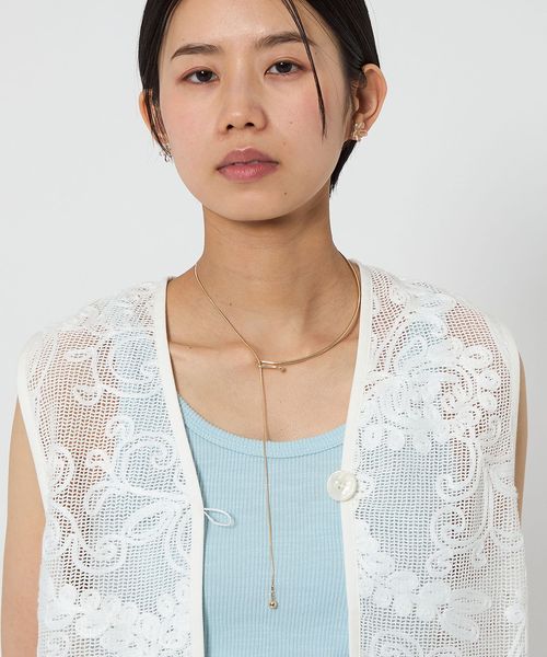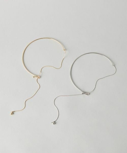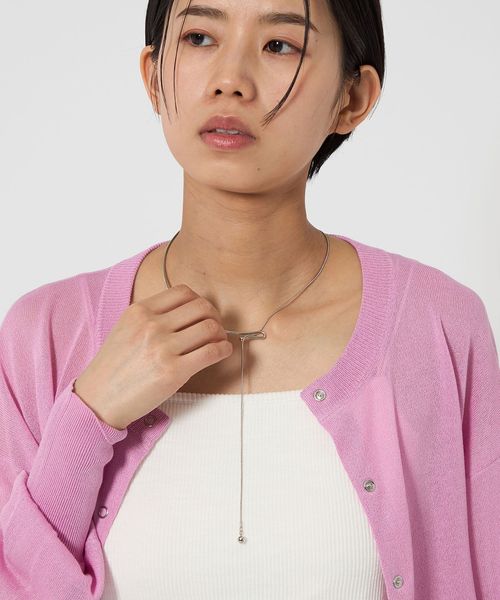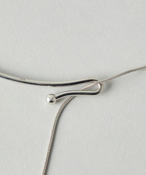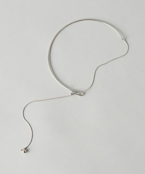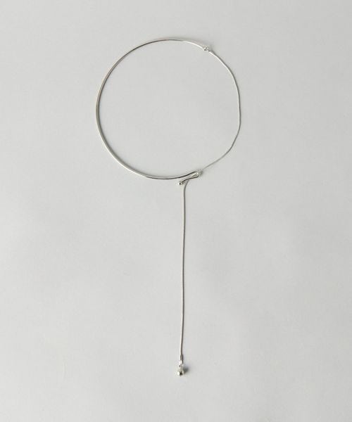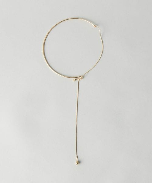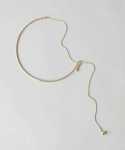 ミニマルなスネークチェーンと組み合わせ、フックをフロント部分にもってきて、チェーンをひっかけるだけで、Y字ネックレス見えのするアイテムです。