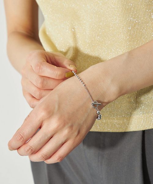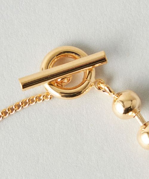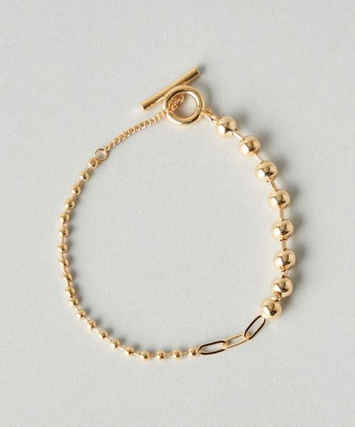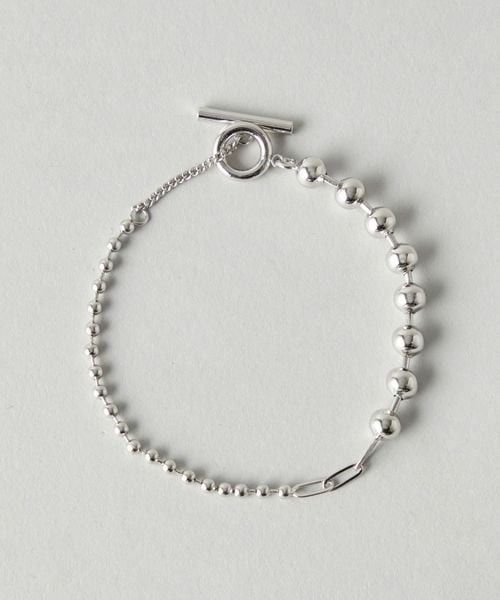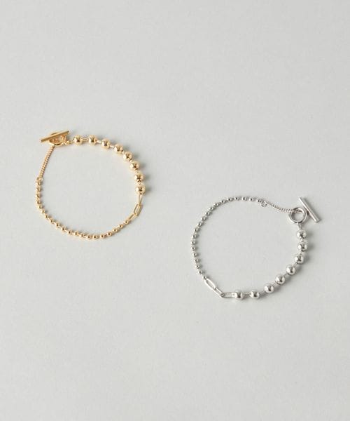 サイズ違いのボールチェーンとテーストの違うチェーンを掛け合わせたブレスレット。