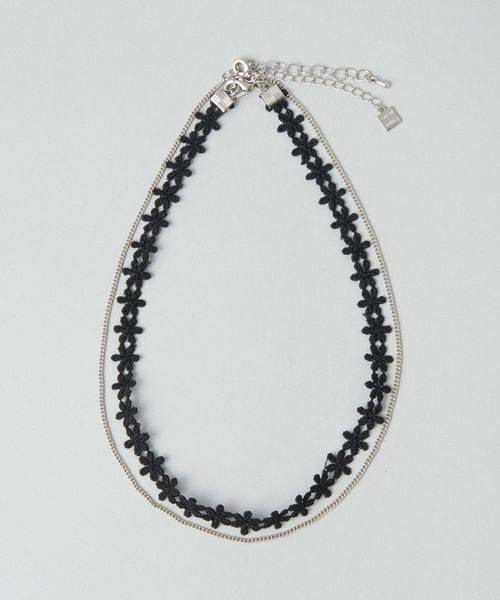 シンプルなチェーンネックレスとフラワーチョーカーをセットにしました。