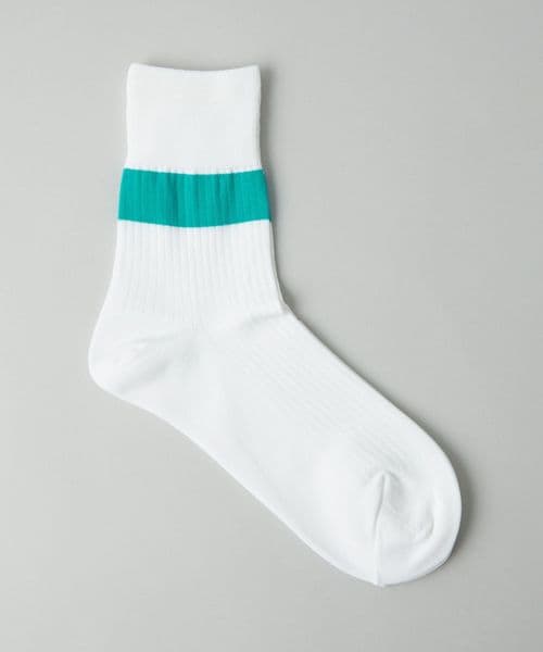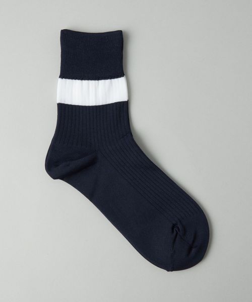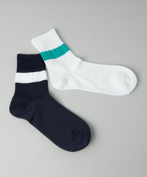 清涼感のあるドライタッチな素材感の糸を使用した発色がキレイなラインショートソックス。