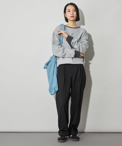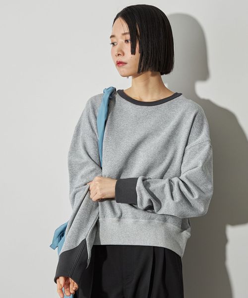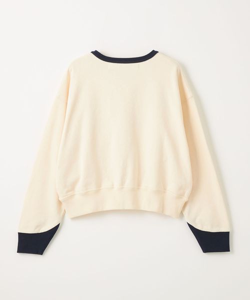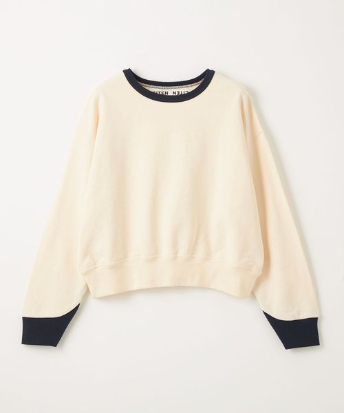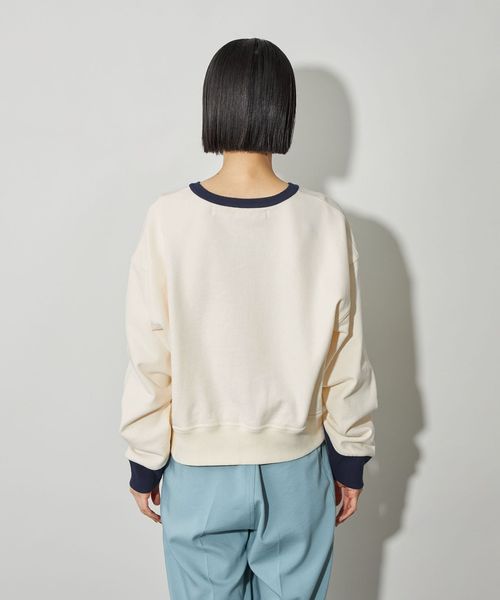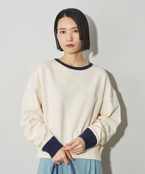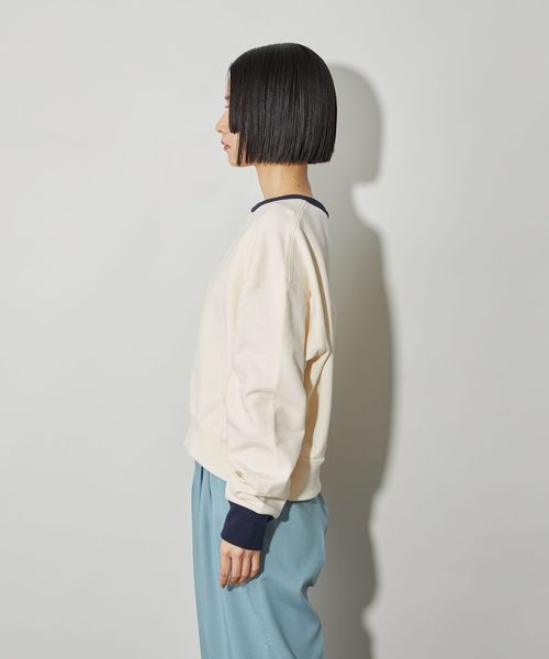 程良いデザイン性により特別感あるスウェットは、ビンテージライクな2トーンカラーの配色で、襟元と袖口を切り替えたリンガーデザインがポイント。