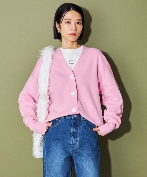 カラーもアクセントになった使いやすいVネックカーディガンが登場