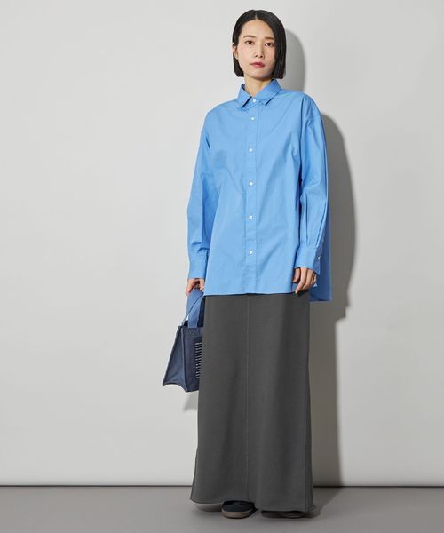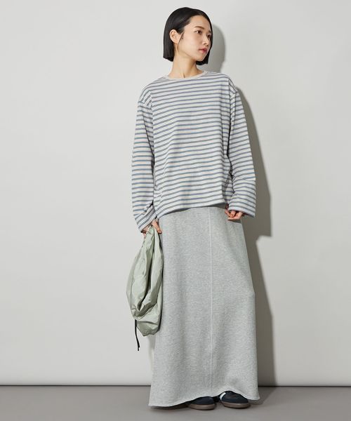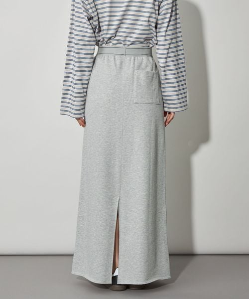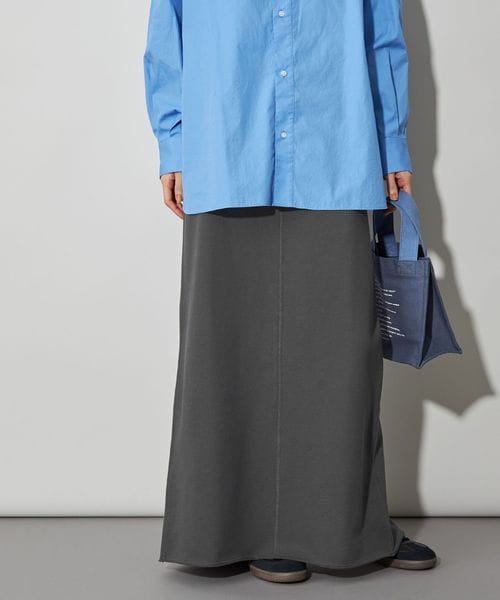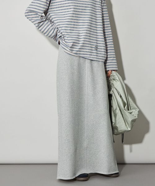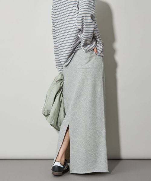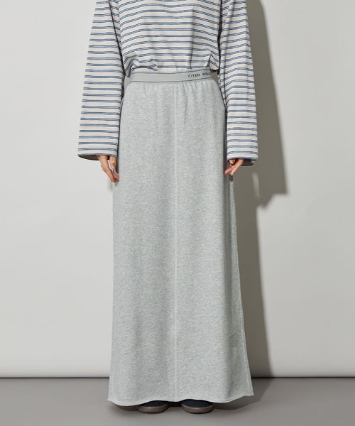 ウエストロゴがトレードマーク。シンプルで洗練されたスウェットロングスカート