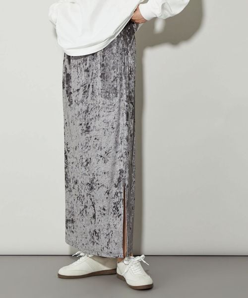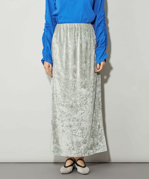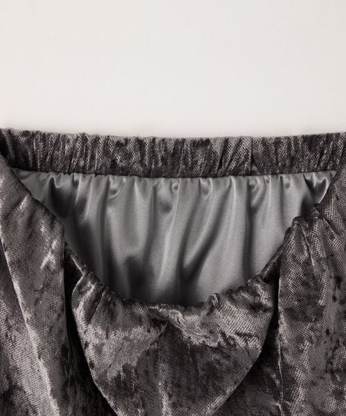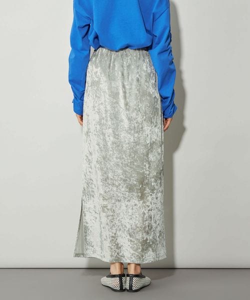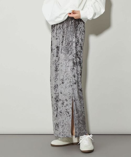 シャイニーなベロア素材が目をひくトレンド感のつまった主役級スカート