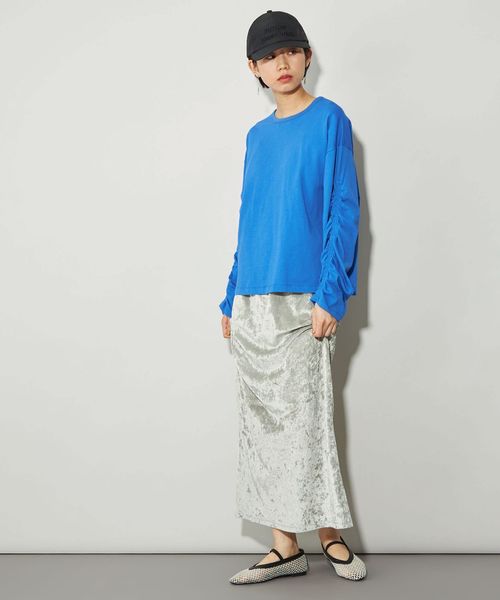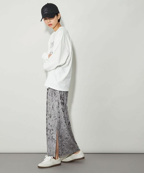 トレンド感のあるシアーベロアで透けすぎず、ほどよくクラッシュ感があるので、ベロア素材の魅力がより際立ちます。
