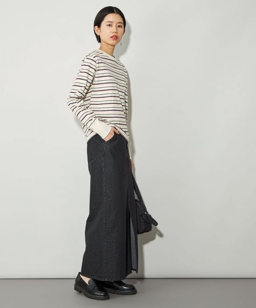 すっきりとしたデニムやゆるっとしたワイドパンツ、ロングスカートなど、幅広いシルエットのボトムスと好相性◎。
