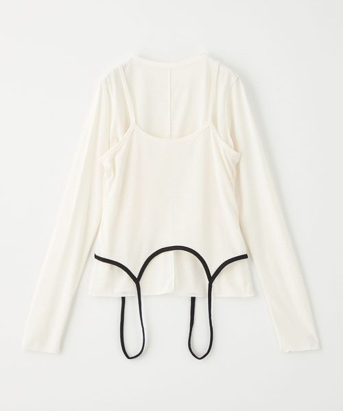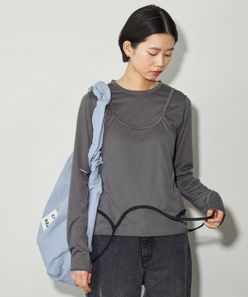 バラバラにも着用できるので、インナーはもちろん、キャミソールをロゴTシャツやカットソーとレイヤードしてカジュアルな着こなしもお楽しみいただけます。