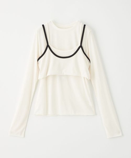 程よいシアー感が魅力のシアートップスとキャミソールのレイヤードセットアイテム。