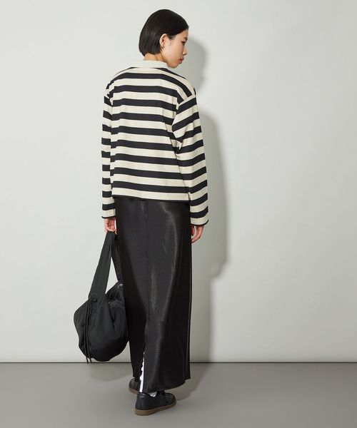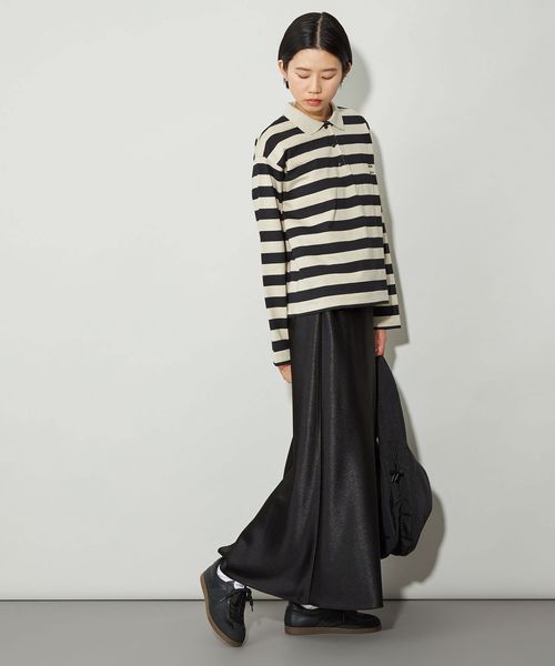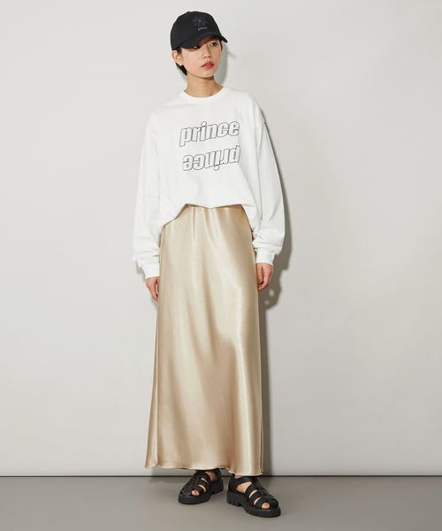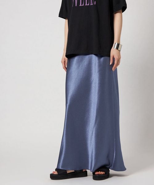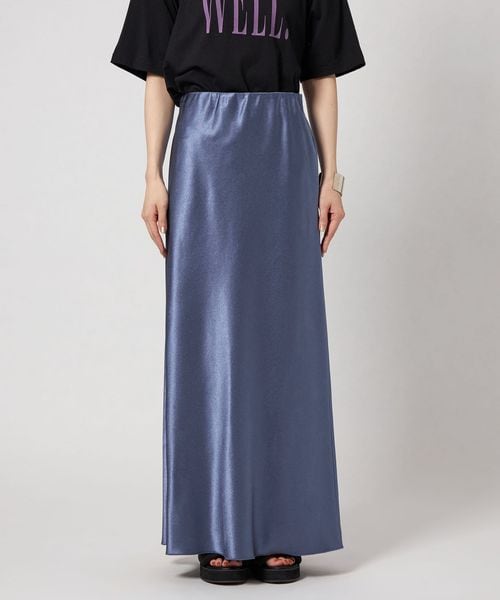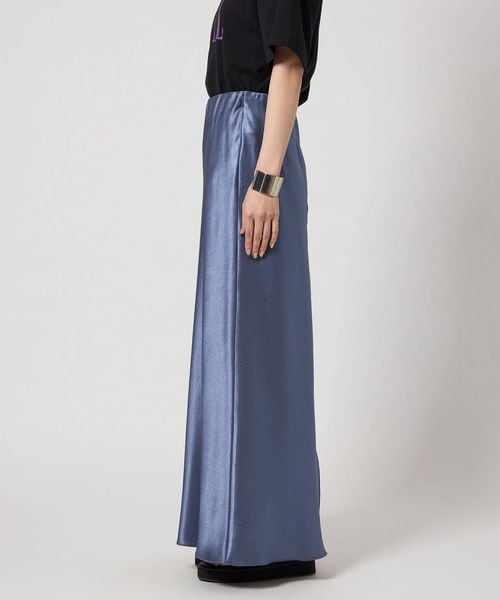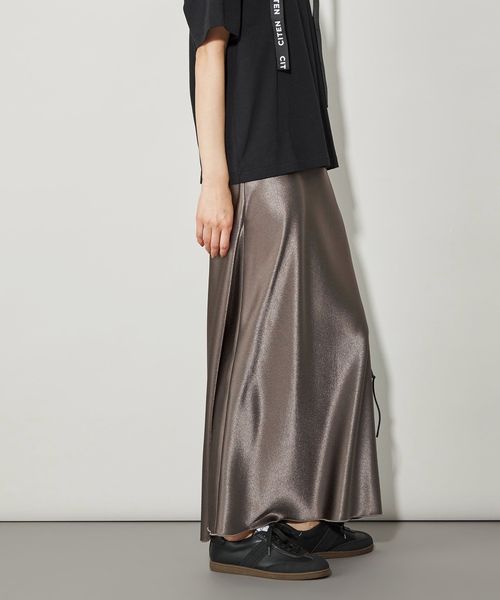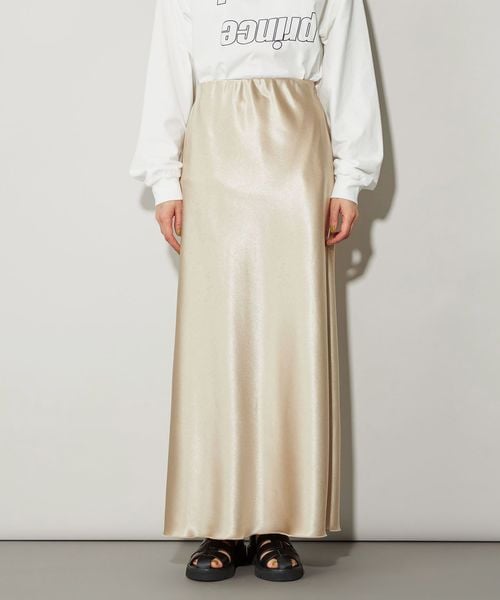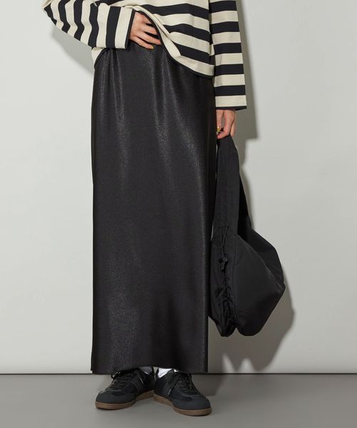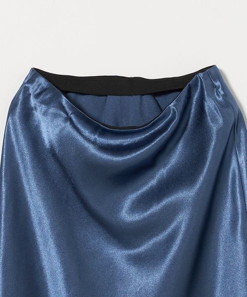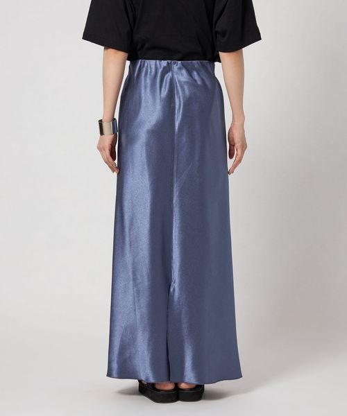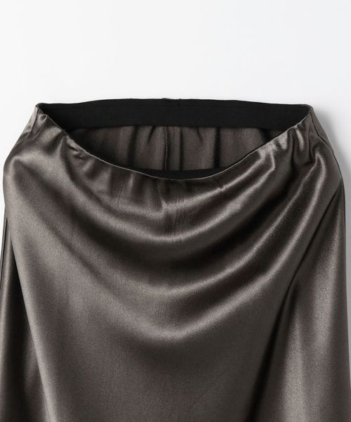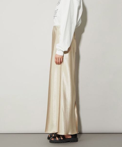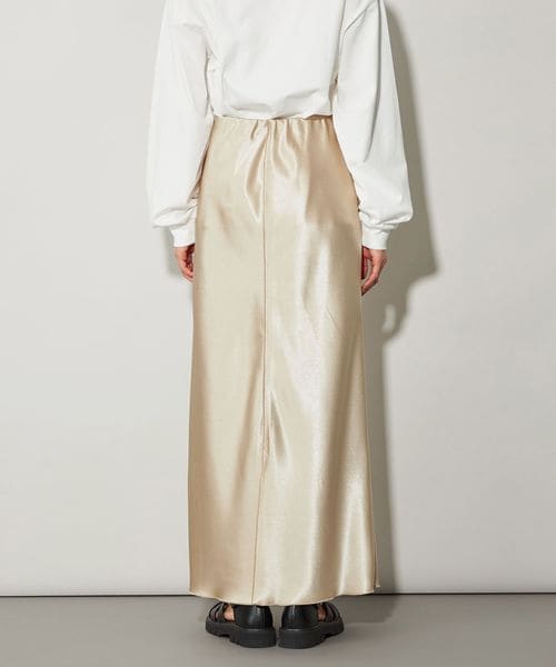 ウエストゴム仕様でイージーに着用ができながらも腰周りはすっきりと仕上げたサテンスカート。