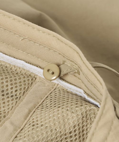 キャップ本体は、シャリ感のある生地を使用し、裏地部分はメッシュで軽く仕上げました。