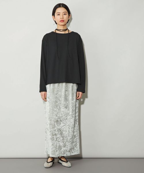 デニムやスラックスと合わせてモードカジュアルなスタイルやオールインワンやブルゾンなどのインナー合わせもおすすめです。