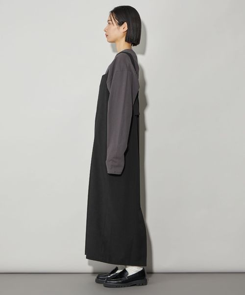 体のラインを拾いにくいストンと落ちる素材感で、シルエットがすっきりし、きれいに見せてくれます。