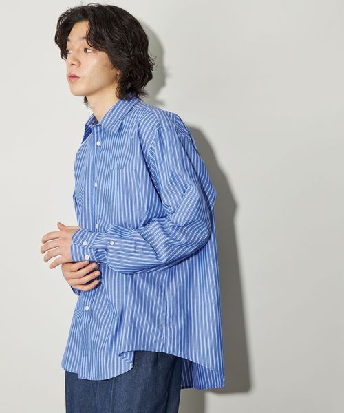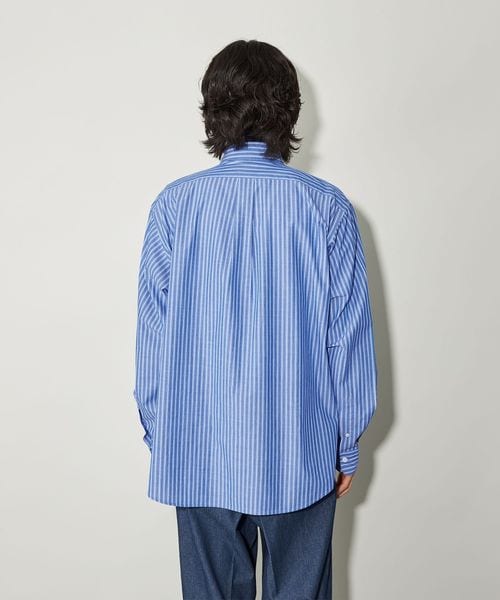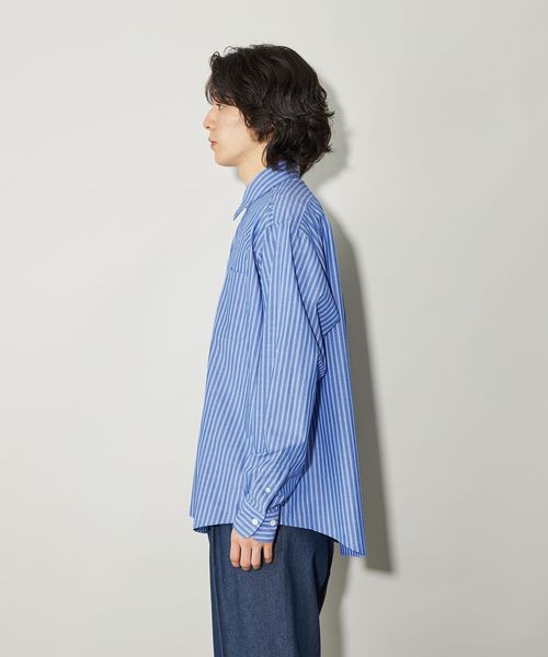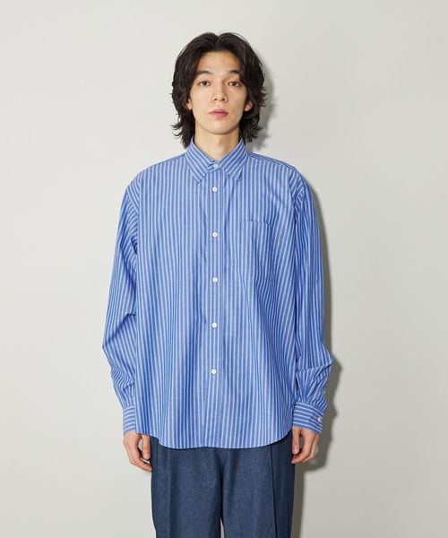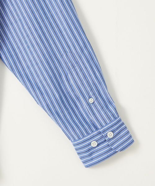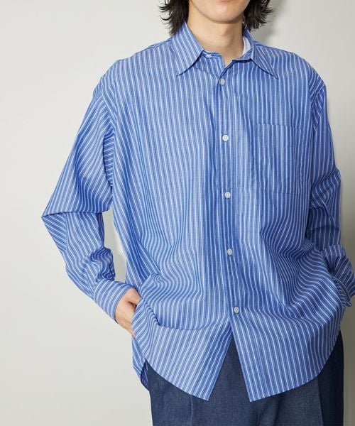 オリジナル柄の爽やかなブルーストライプは1枚でもサマになる大人なストライプです。